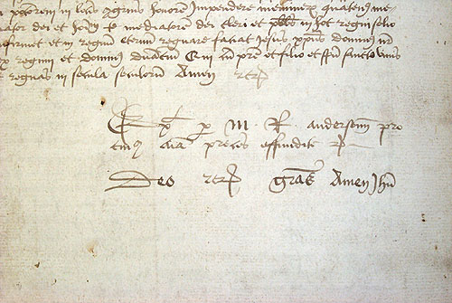1. Written presumably in Scotland, after 1494, by R. Andersoun, with his colophon: 'Ex(plici)t p(er) M(anum) R. andersoun pro | cui(us) a(n)i(m)a preces effundite etc. | Deo re etc. gra(cia)s Amen Ih(es)u' (fol. 128v); apparently copied from BL, Harley MS. 6149, which was written apparently by Loutfut in 1494 (cf. Houwen edn., pp. lxxxvii-xcv).