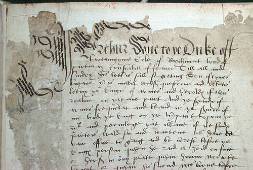 1. (fol.1r-v) Prologue, in the form of a proclamation dated at Tours, 7 February 1447: 'Arthur Sone to þe Duke off bartaingynne Erle of Rychmont lord of partinay constabill of france [presumably Arthur III (1393-1458)] þe vij day of februer þe 3eir of god M iiijc and xlvij 3eres'.