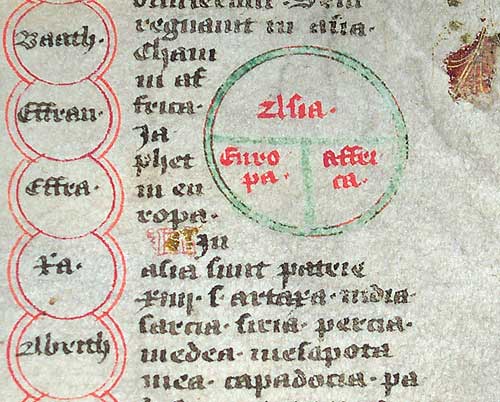 One 'Tau' diagram of the earth, with "Asia." in the semicircle at the top, "Europa." and "Affrica." in the quarters below (membrane 1).