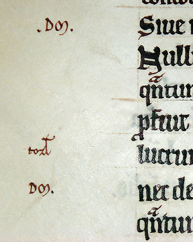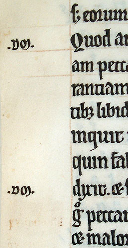 2. 'Nota' signs, marginal notes, and futher 'D.M.' marks were added by several early hands; running titles in red e.g. 'liber primus' added in the 13th century, on rectos (fols. 3r-78r).